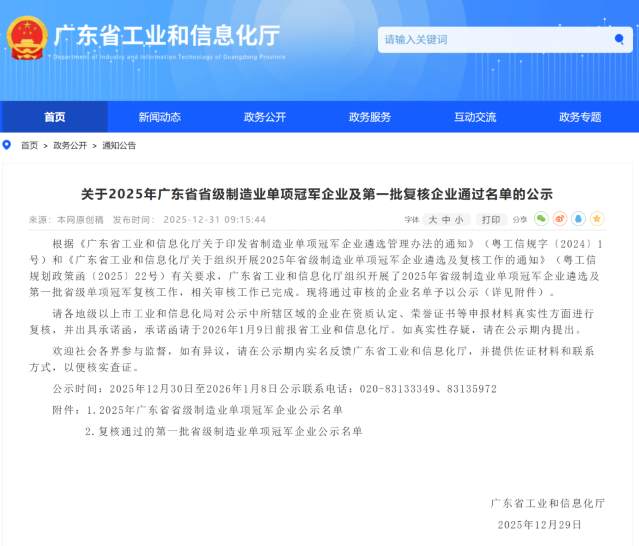 近日,广东省工业和信息化厅公示了《2025年广东省省级制造业单项冠军企业》名单,深圳自动化学会副会长单位——深圳市奥拓电子股份有限公司凭借在超高清LED影视屏领域的深耕细作、技术突破及市场引领地位,成功获评广东省省级制造业单项冠军企业,成为该细分赛道的标杆企业。 广东省制造业单项冠军企业遴选标准严苛,要求企业深耕细分领域5年以上、产品市场占有率位居全国前三或全球前五,且技术水平处于行业领先地位。奥拓电子顺利跻身榜单,彰显了公司在虚拟影视拍摄、LED电影屏两大核心应用领域的行业竞争力。 此次获评省级制造业单项冠军,为奥拓电子注入新的发展动力。未来,公司将继续聚焦超高清LED影视屏核心领域,深化虚拟拍摄、LED电影屏技术创新,助力广东制造业向全球产业链价值链中高端迈进。