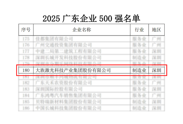 擎旗奋进 智造未来丨2025广东500强企业公布,大族激光再次登榜!